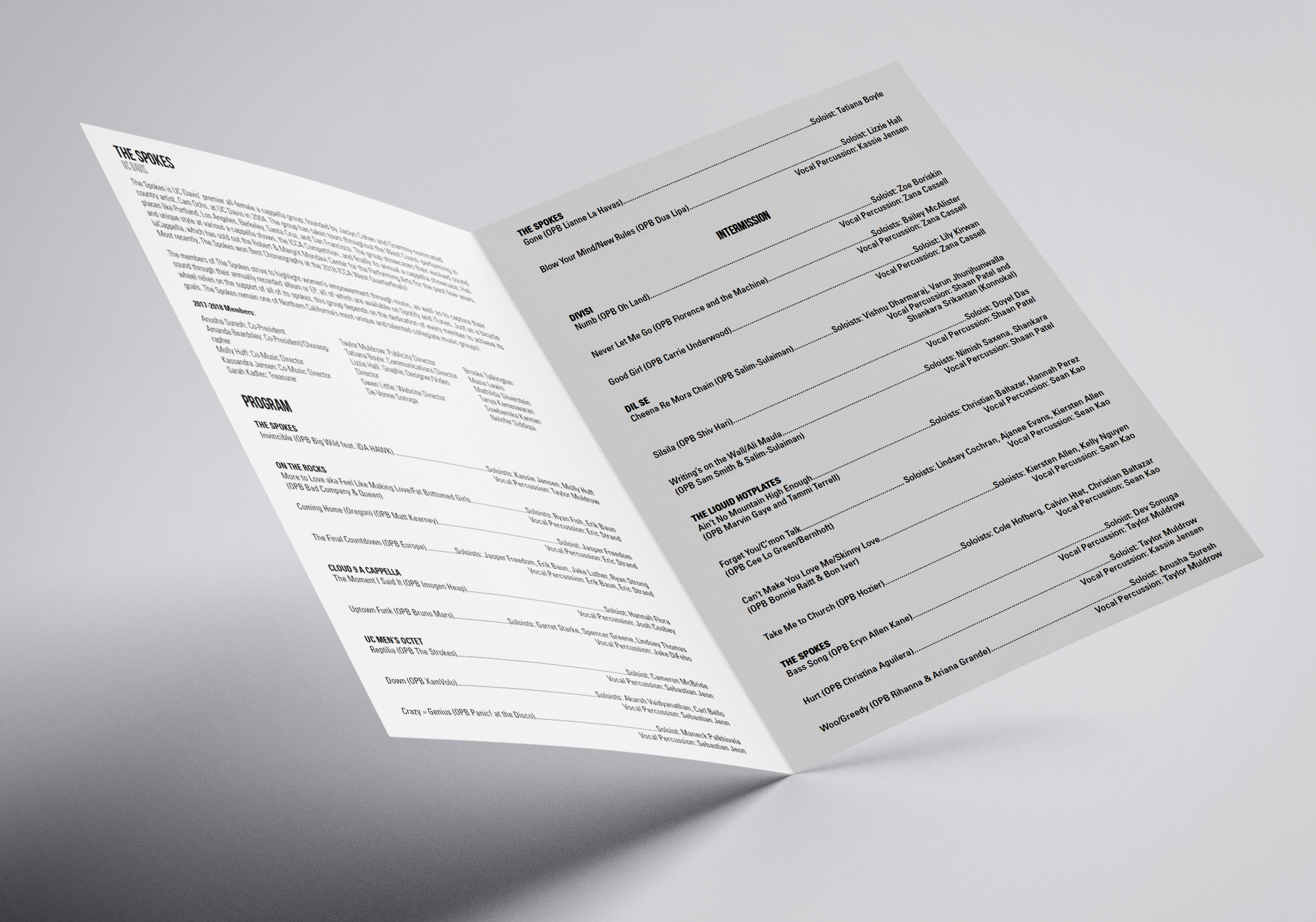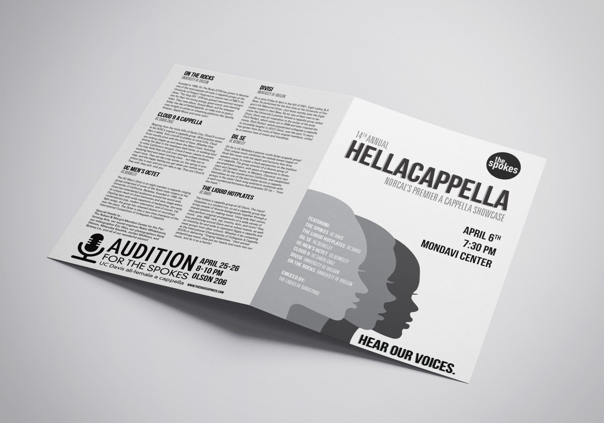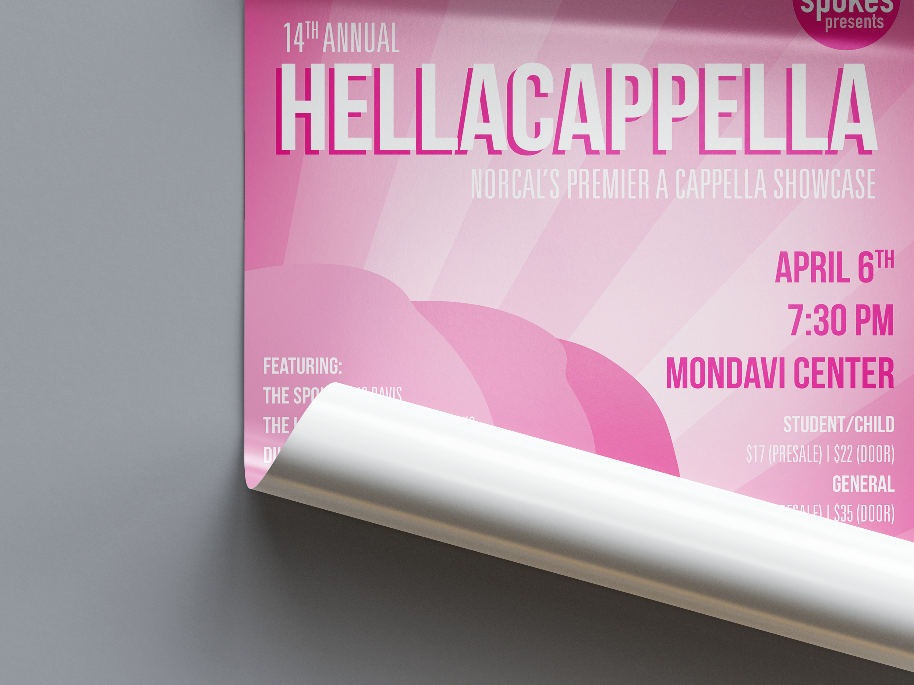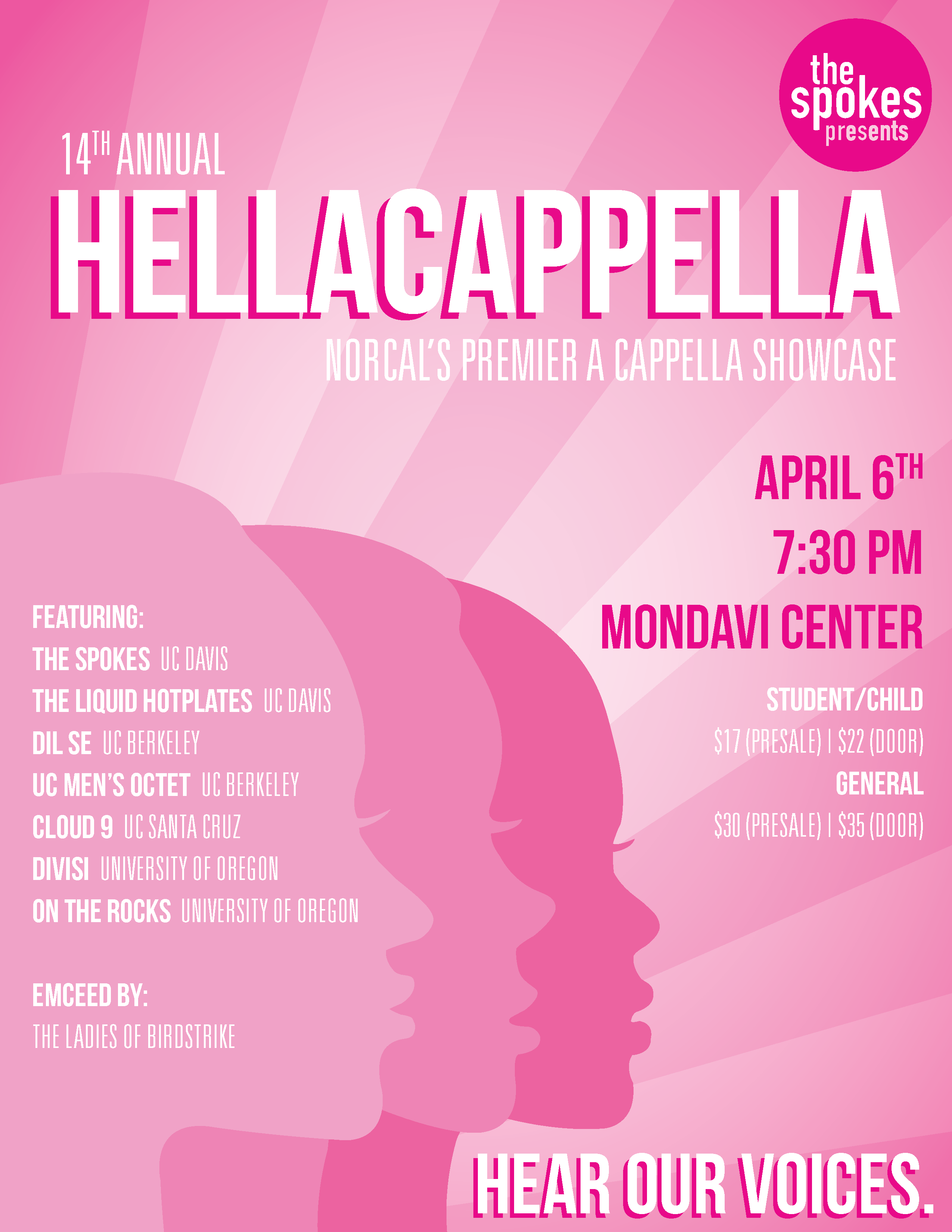 I designed this poster for my all-female a cappella group The Spokes' annual showcase.